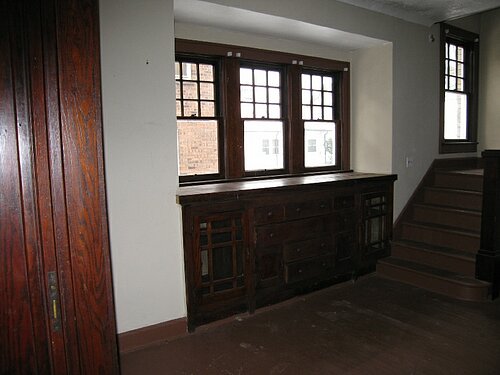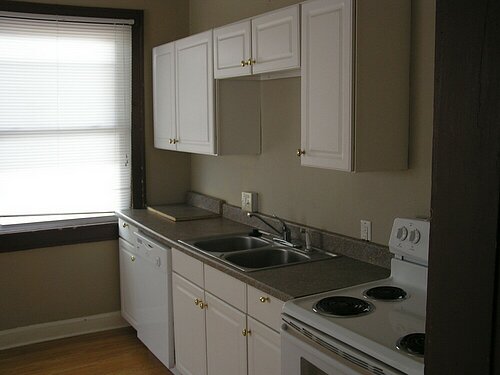 3 bedroom, 1.5 bath in this half of the duplex. Hardwood floors, brick exterior, new energy-efficient windows in 2008, fireplace, newer appliances, full basement w/washer/dryer hookups, central air-conditioning. Off-street parking around back for 2 cars. Stained wood pocket doors between dining room and living room and original built-ins in dining room. Rent includes water bill.