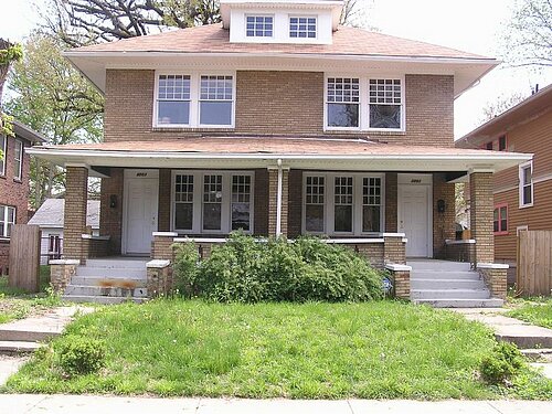 3 bedroom, 1.5 bath in this half of the duplex. Hardwood floors, brick exterior, new energy-efficient windows in 2008, fireplace, newer appliances, full basement w/washer/dryer hookups, central air-conditioning. Off-street parking around back for 2 cars. Small deck out back. Fenced in yard. Rent includes water bill.